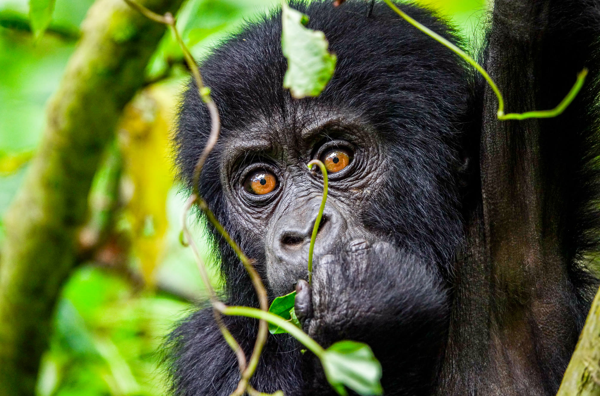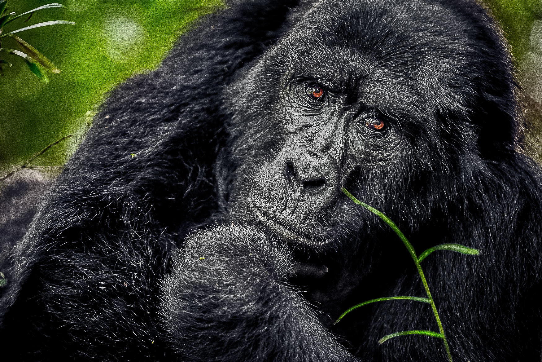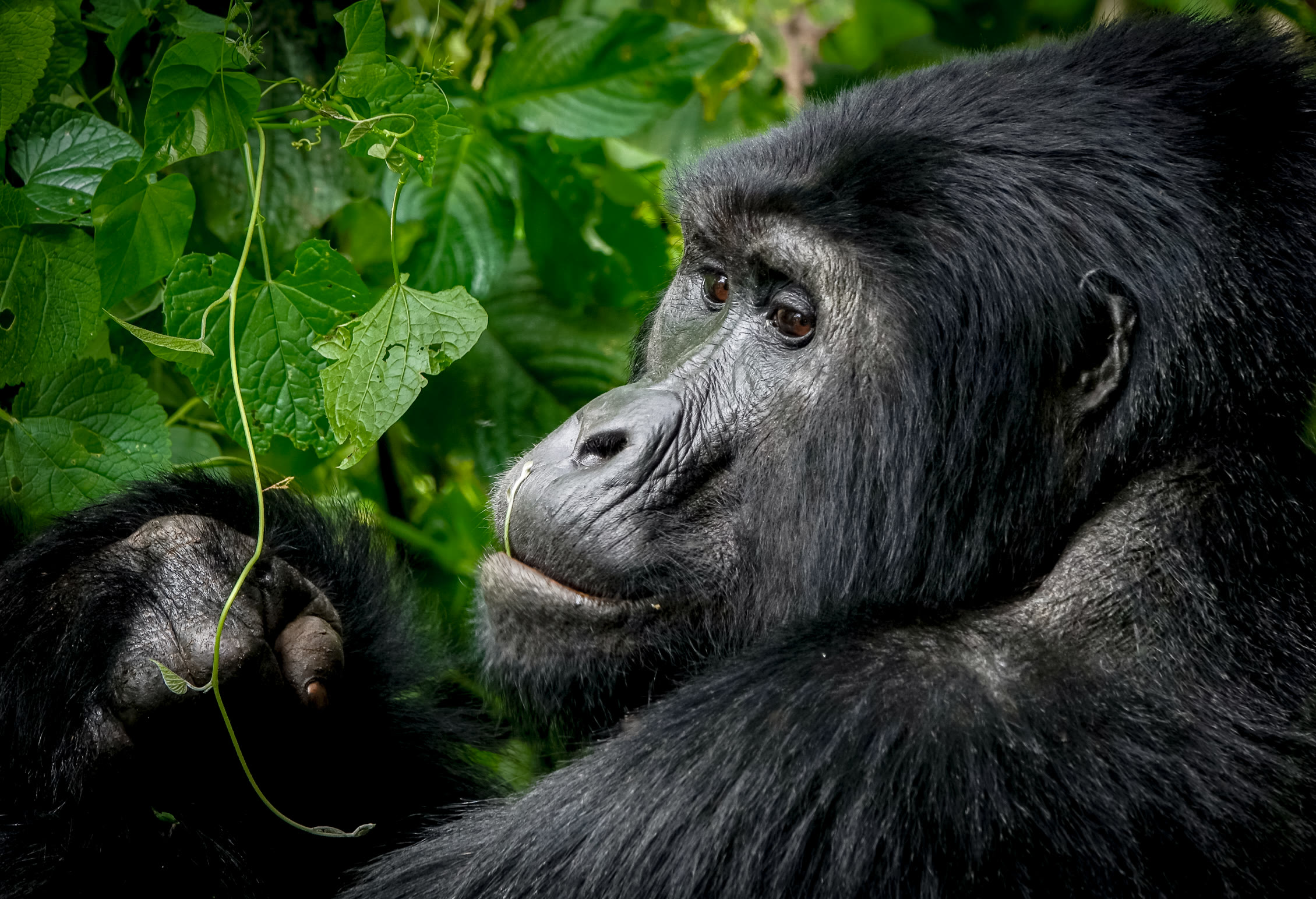 The mountain gorilla in East Africa (DRC, Rwanda and Uganda) is declared as endangered specie by WWF. Total number left: 1.000. Controlled tourism in the 3 countries is helping funding important conservation and protection of the gorillas.